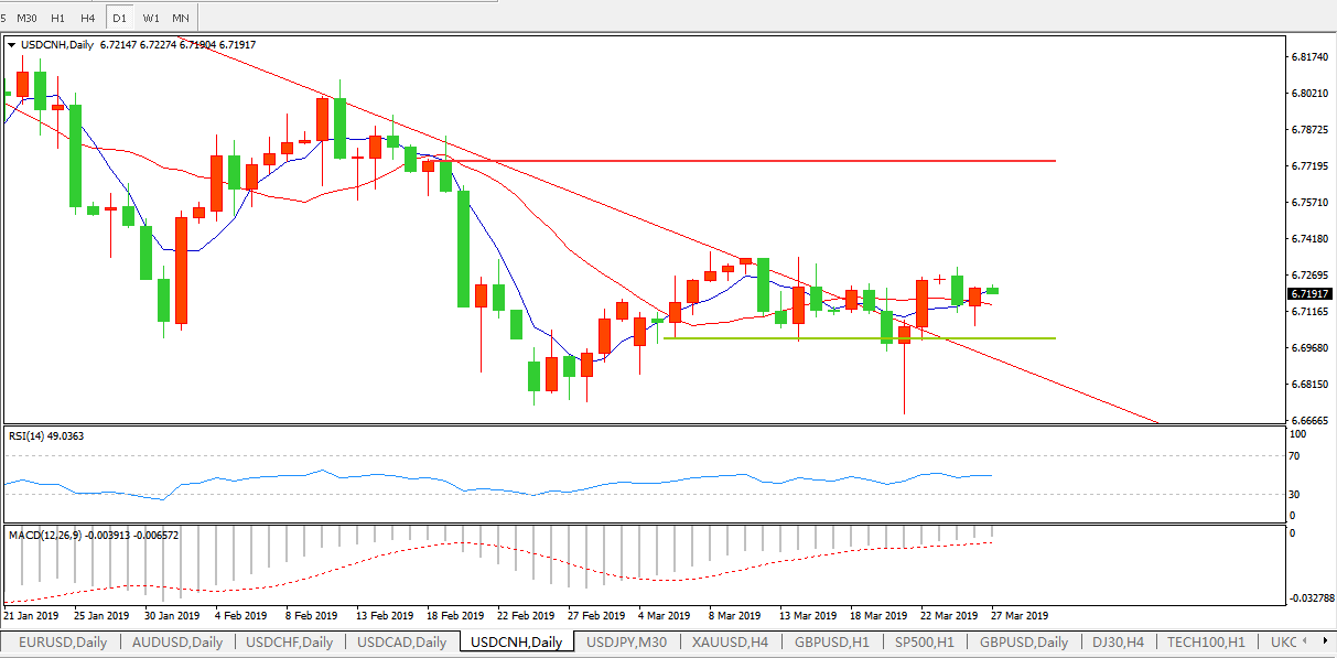 美元兑人民币USDCNH 日线图: