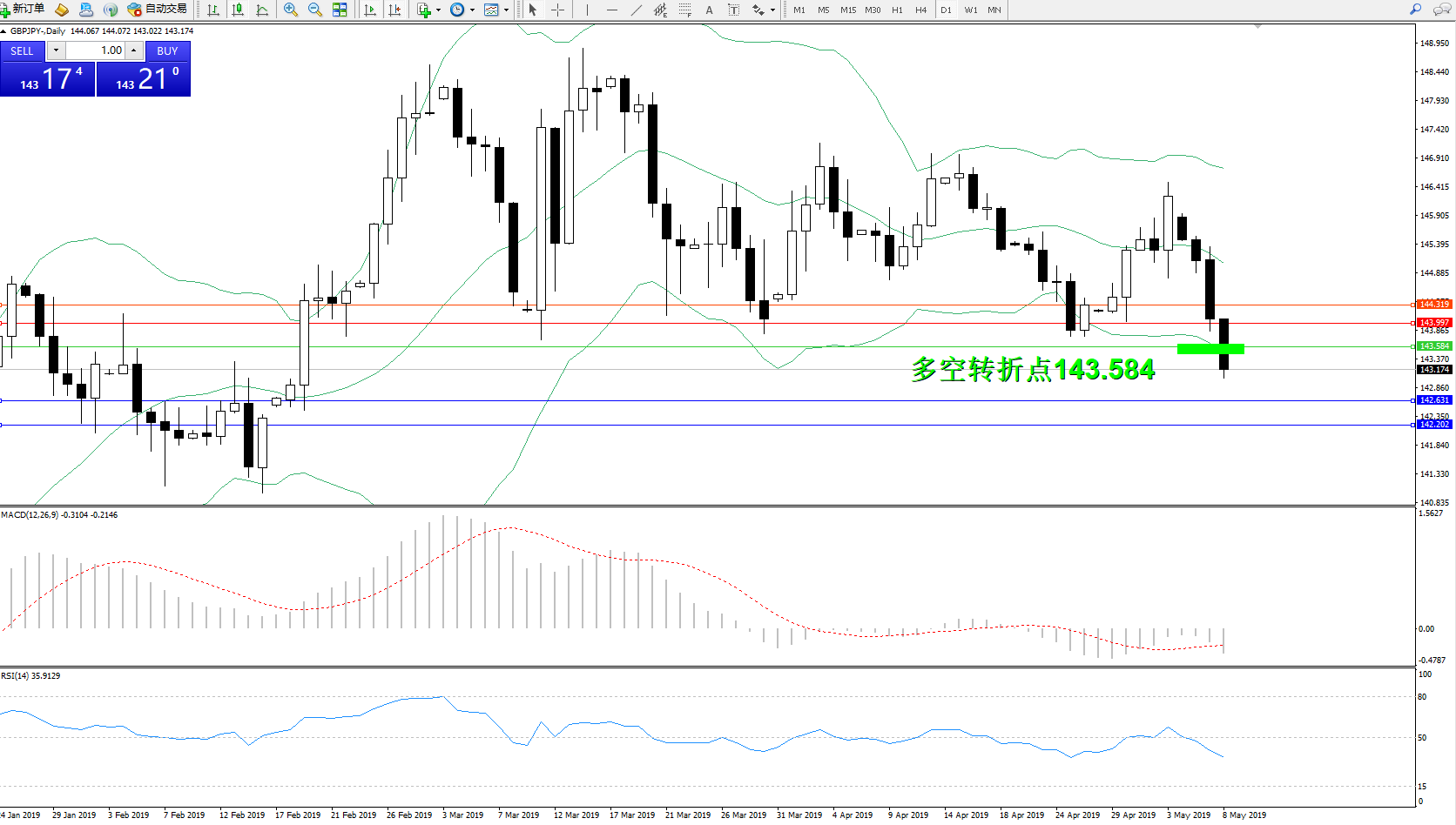 交易策略:143.584下方看跌,目标142.631、143.202