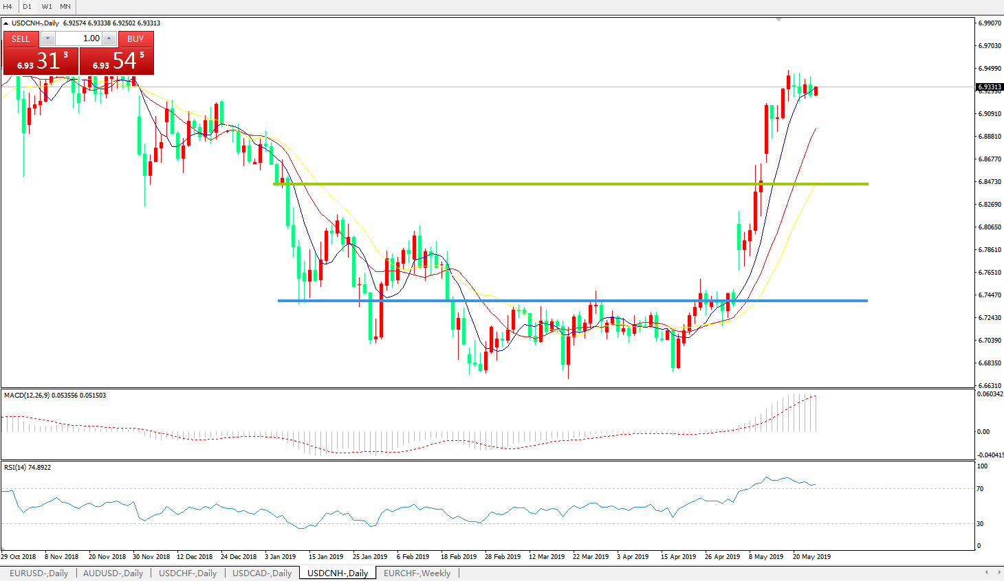 技术面简析:日线均线呈有序多头排列看多,MACD0轴上方运行且动能柱0轴上方持续放量RSI超买区域小幅下行,汇价强力上攻后维持整理态势,预计短期汇价有进一步上行空间,中期重点关注中美贸易争端后续进展