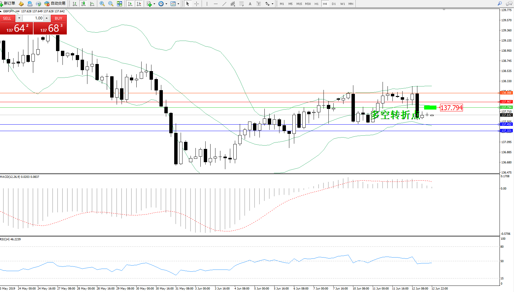 交易策略:137.794下方看跌,目标137.452137.321