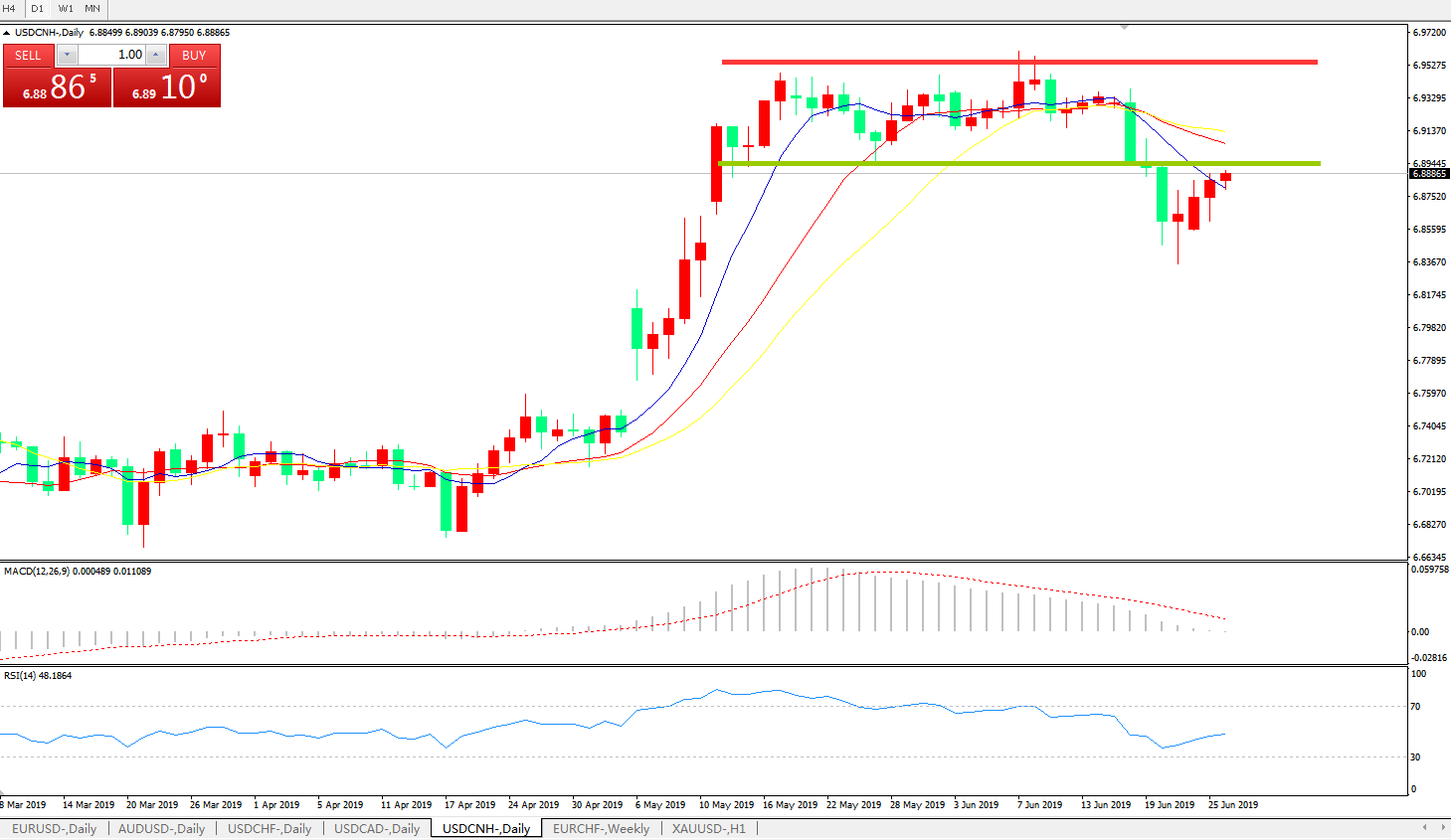 备选策略: 在6.8880之上,看涨,目标价位为6.9600,然后为6.9800。