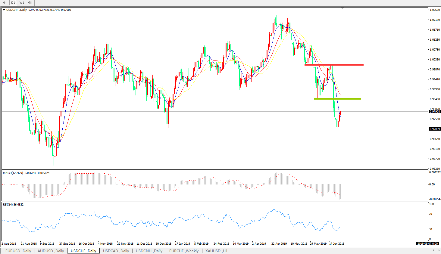 支撑位:0.9700、0.9650