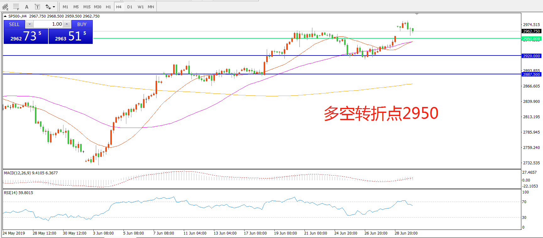 周一(7月1日)美市盘中,美国最新出炉的6月份ISM制造业指数意外表现强劲,美元跳升至日内高点,主周末,中美重启贸易谈判,使得市场风险情绪回升,利好股市。标普500高开后小幅回落,最终收报2963.25点。美国大型科技股与中概股大部分收涨。