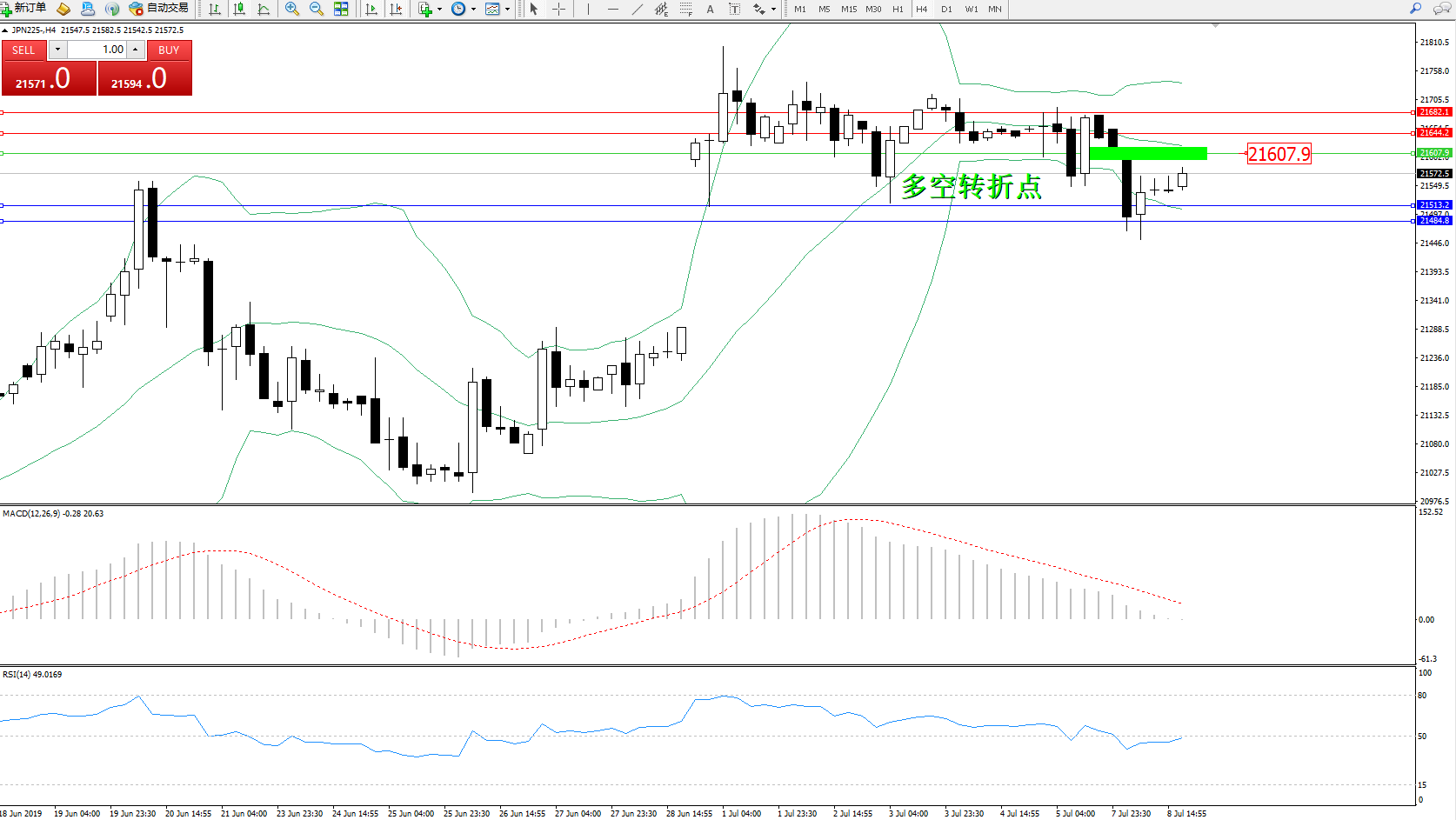 交易策略:21607下方看跌,目标21513、21484
