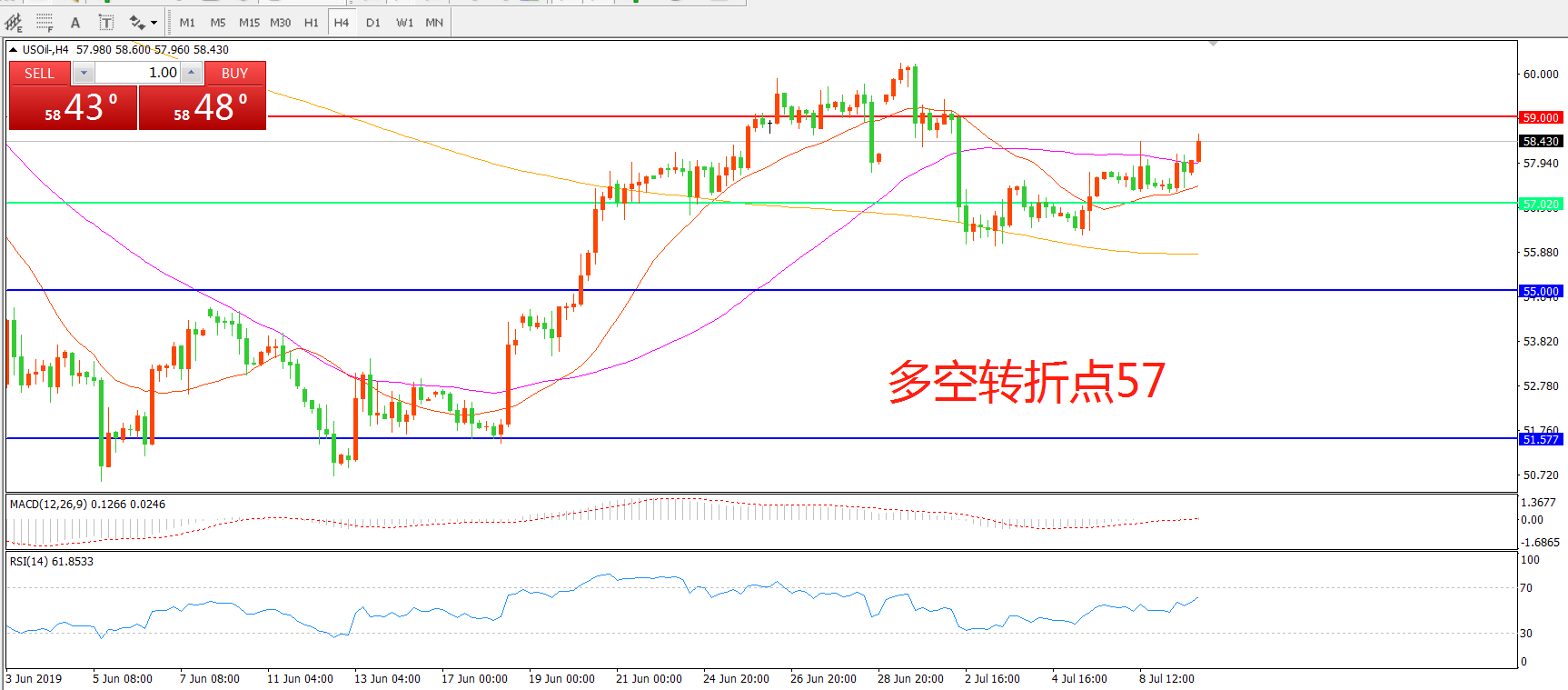 多空转折点:57.00