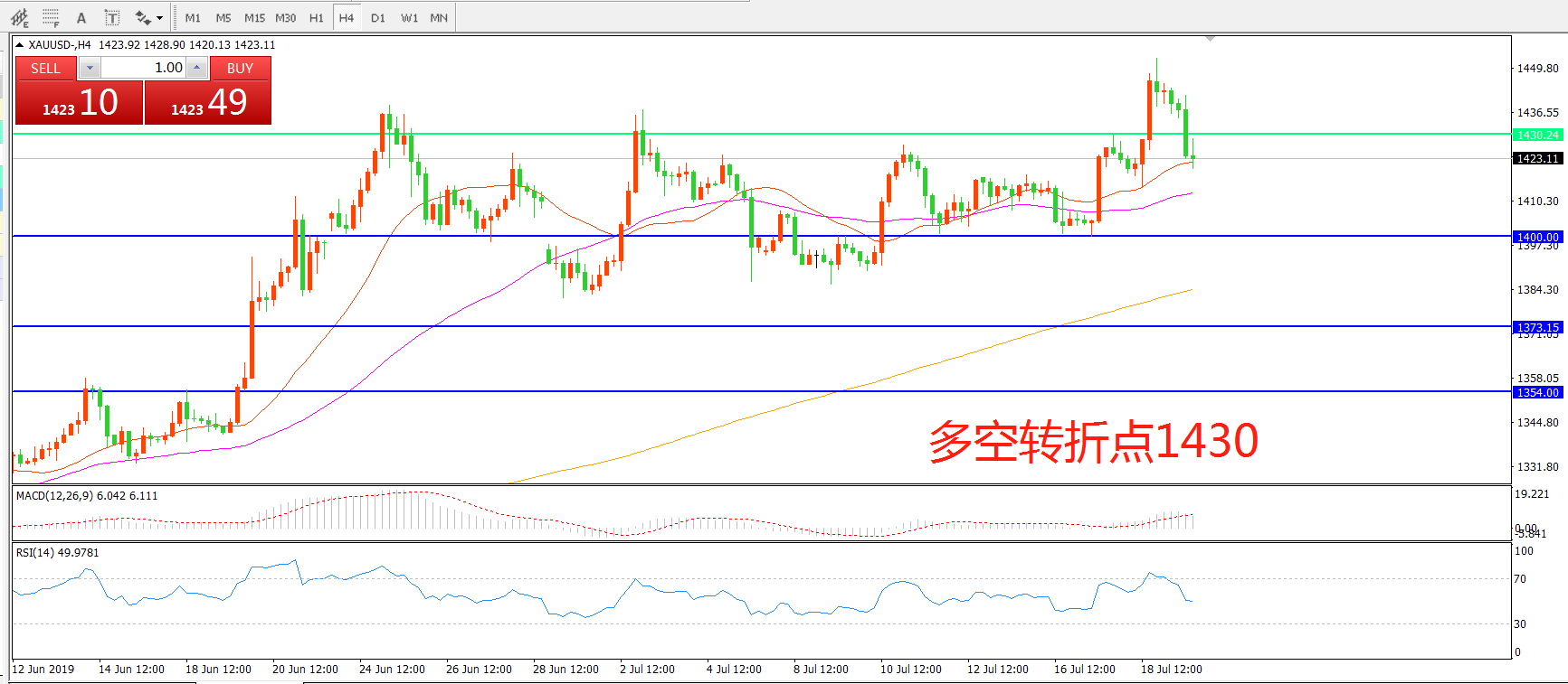交易策略:在1430.00之下看跌,目标1400.00   1373.00