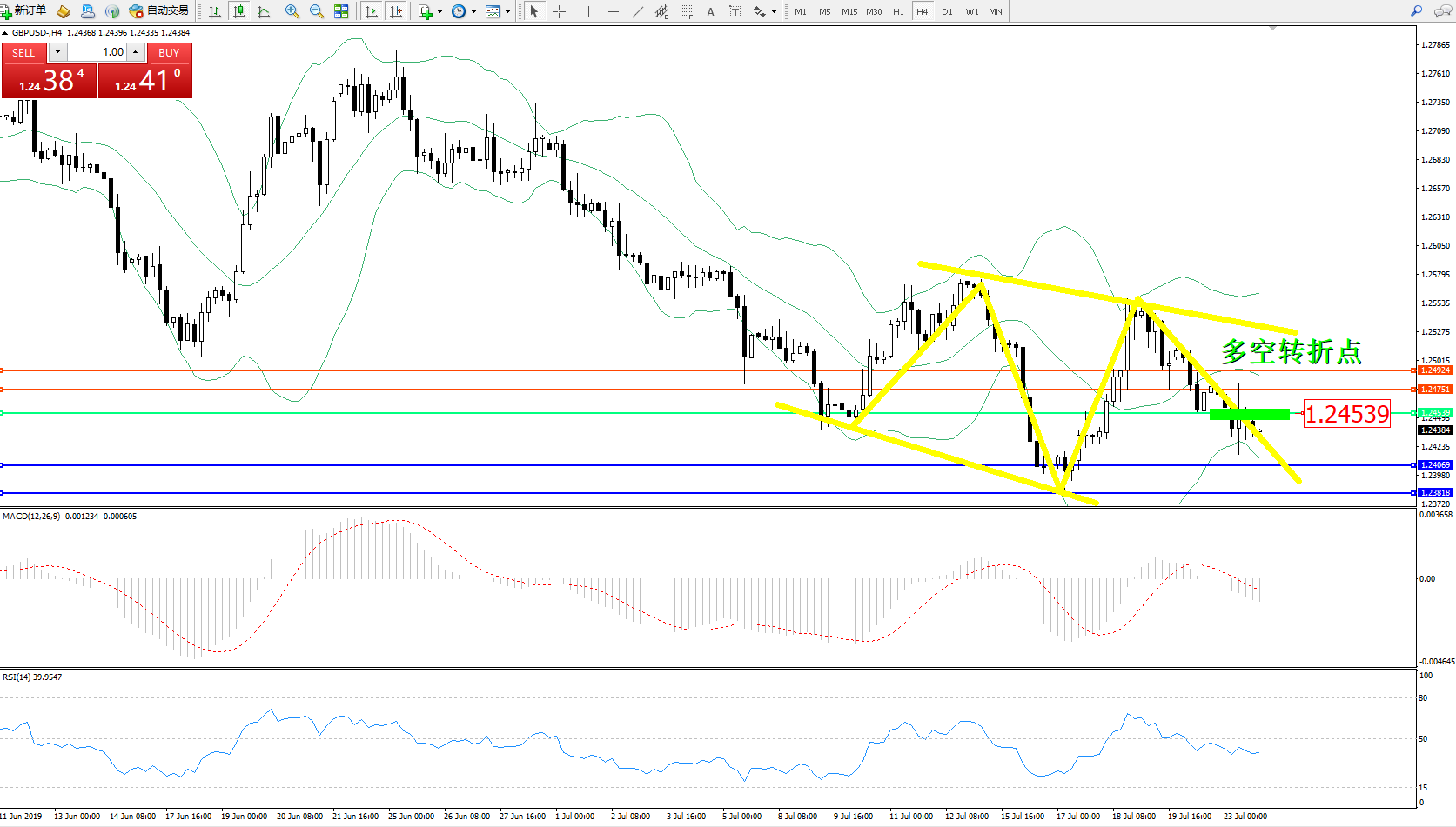 交易策略:1.24539下方看跌,目标1.24069、1.23818