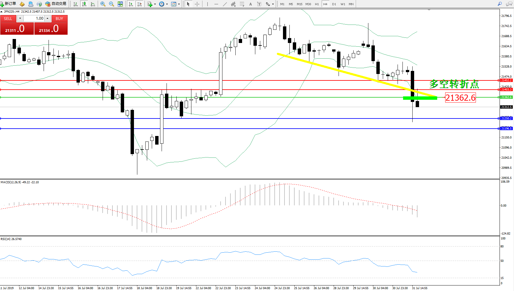 日经指数JPN225——4小时K线图: