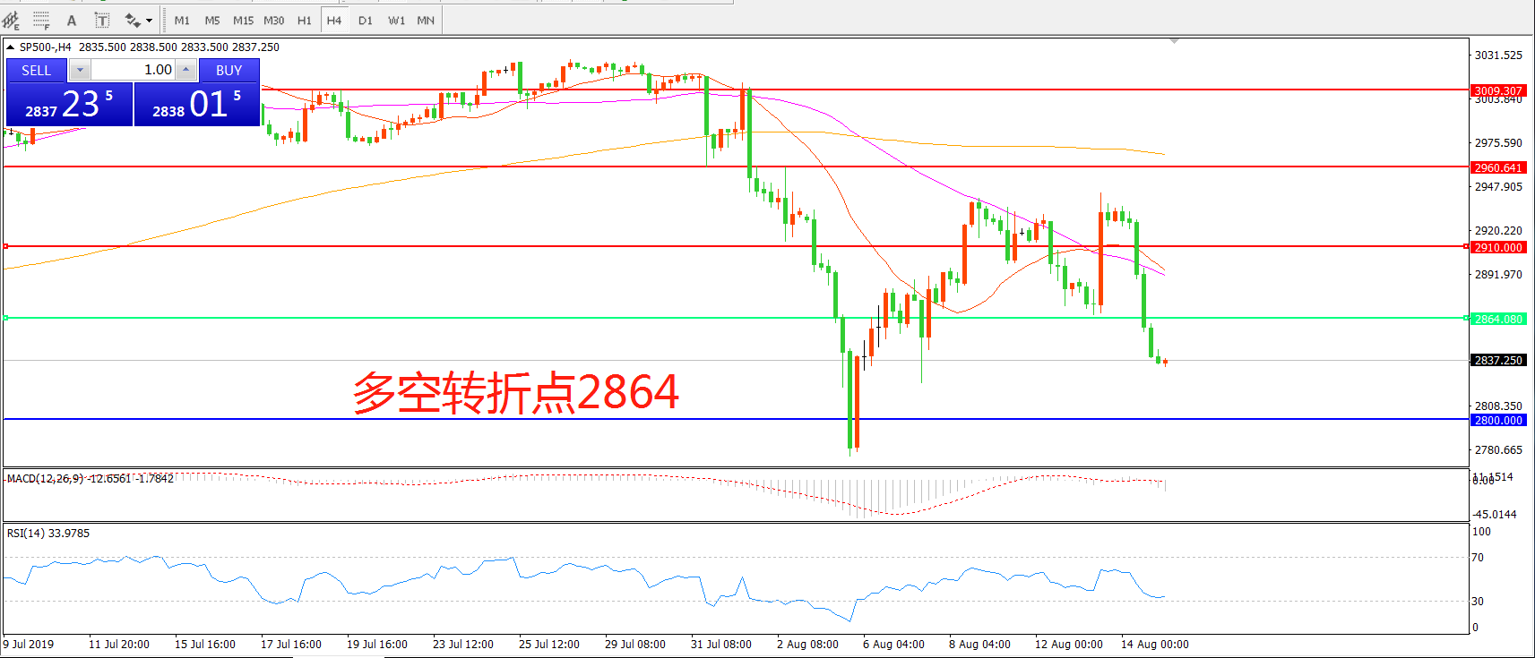 多空转折点:2864.00