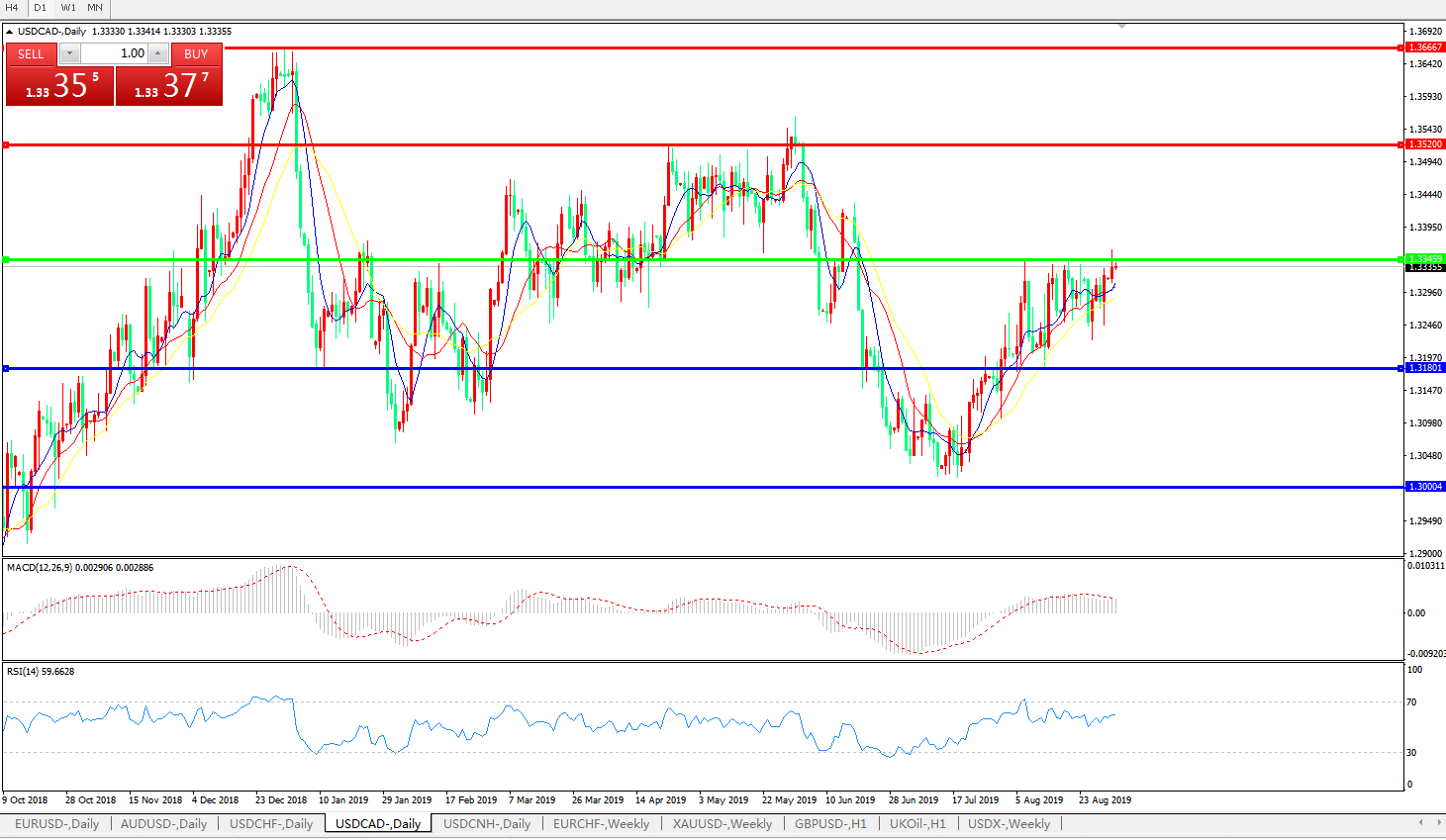 美元兑加元USDCAD    日线