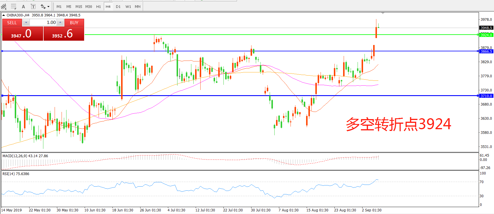 多空转折点:3924.00