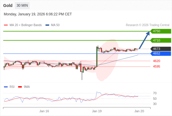 在 4652 之上,看涨,目标价位为 4710 ,然后为 4750 。