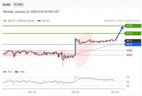在 4652 之上,看涨,目标价位为 4710 ,然后为 4750 。