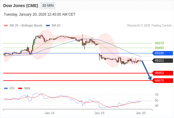 在 49330 之下,看跌,目标价位为 48850 ,然后为 48670 。