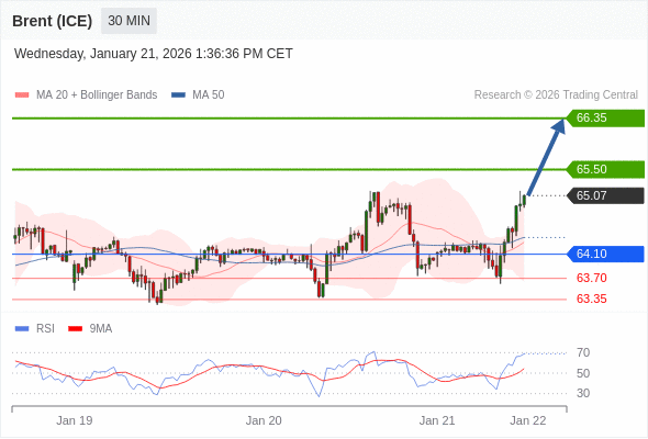 在 64.10 之上,看涨,目标价位为 65.50 ,然后为 66.35 。