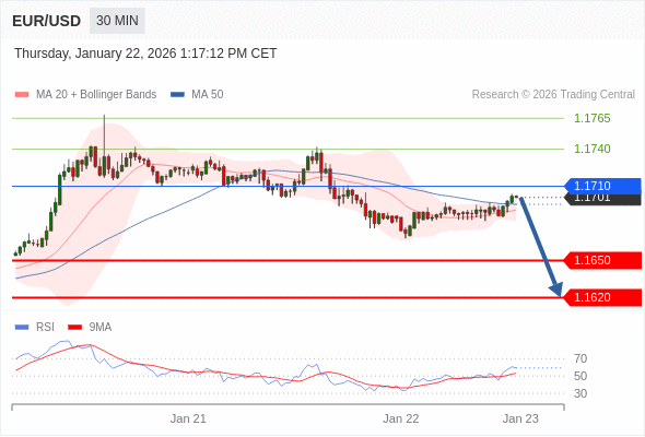 在 1.1710 之下,看跌,目标价位为 1.1650 ,然后为 1.1620 。
