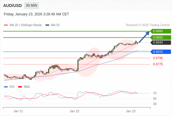 在 0.6815 之上,看涨,目标价位为 0.6860 ,然后为 0.6880 。