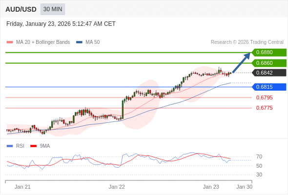 在 0.6815 之上,看涨,目标价位为 0.6860 ,然后为 0.6880 。