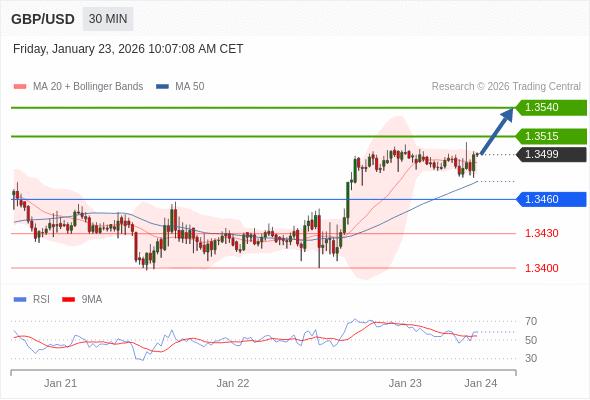 在 1.3460 之上,看涨,目标价位为 1.3515 ,然后为 1.3540 。