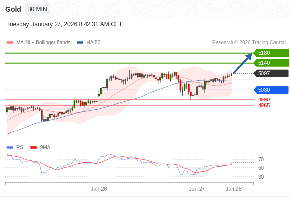 在 5030 之上,看涨,目标价位为 5140 ,然后为 5180 。