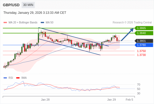 在 1.3780 之上,看涨,目标价位为 1.3840 ,然后为 1.3865 。