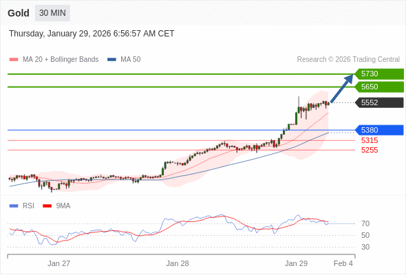 在 5380 之上,看涨,目标价位为 5650 ,然后为 5730 。