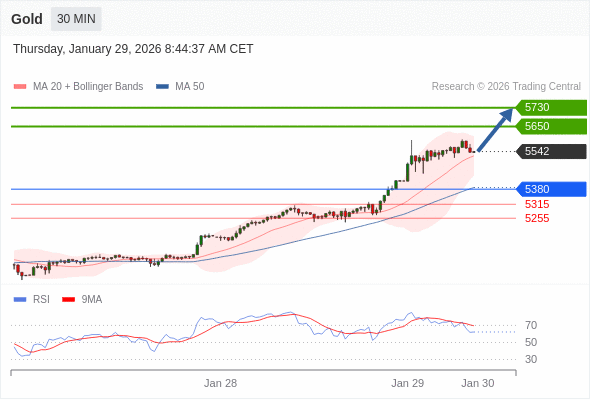 在 5380 之上,看涨,目标价位为 5650 ,然后为 5730 。