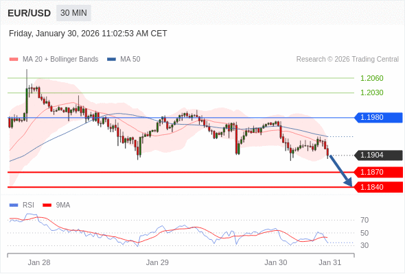 交易策略: 在 1.1980 之下,看跌,目标价位为 1.1870 ,然后为 1.1840 。