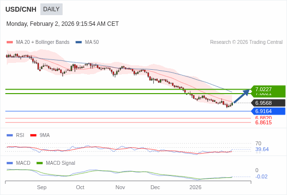 替代方案: 在6.9164以下,期待6.8820和6.8615。