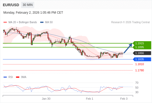 在 1.1835 之上,看涨,目标价位为 1.1895 ,然后为 1.1915 。