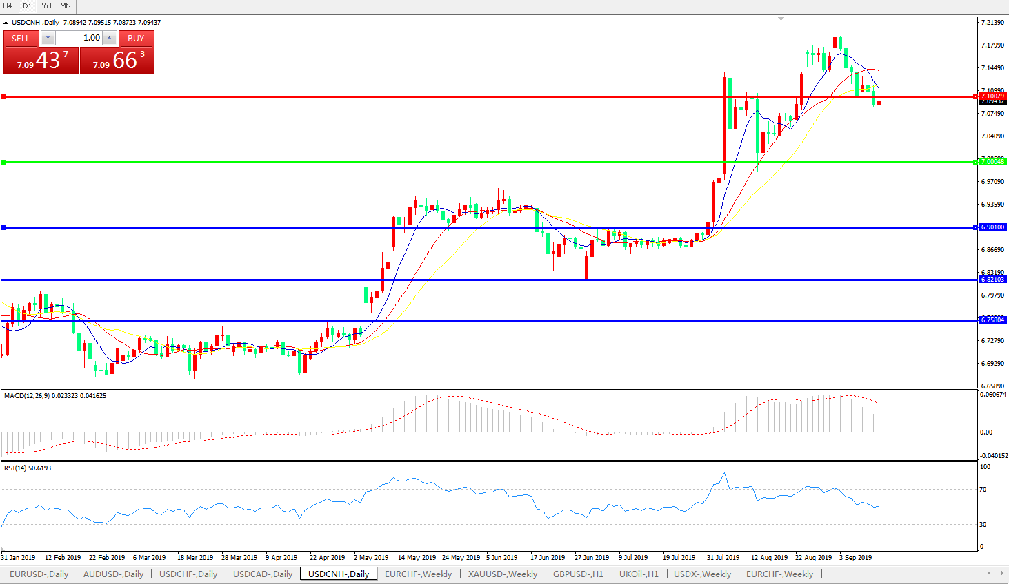 亚市早盘美国总统特朗普最新在推特上表示,将把加码对华关税的时间从10月1日推迟到10月15日。特朗普称,将于10月15日提高对2500亿美元中国商品加征的关税。在岸人民币周三收跌137点,回吐昨日过半涨幅,中间价则小升3点创两周新高,交易员称,市场风险偏好继续回暖,但人民币在升破7.1关口后逢低购汇迅速出手,也反应市场对后市走势预期仍然谨慎,要持续升破7.1甚至高于中间价,则需要更多的利好。分析师指出,眼下,欧洲央行宽松预期或仍加剧美元被动走强,这将在短期内令人民币续升空间受限。但同时,中间价继续持稳,反过来也限制了人民币跌势。另外大行在长端掉期的卖压略有减少,长端掉期稳步小升。瑞穗银行最新观点称,短期内人民币将继续维持7.1-7.2之间波动。中国国务院总理李克强周二表示,中美两国存在广泛的共同利益,双方应当按照两国元首达成的共识,本着平等和相互尊重的原则,求同存异,找到双方都可以接受的解决分歧的办法。