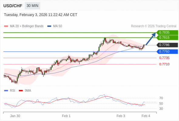 在 0.7760 之上,看涨,目标价位为 0.7815 ,然后为 0.7835 。