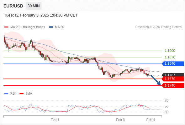 交易策略: 在 1.1840 之下,看跌,目标价位为 1.1770 ,然后为 1.1740 。