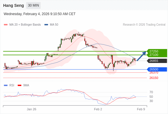 在 26500 之上,看涨,目标价位为 27100 ,然后为 27250 。