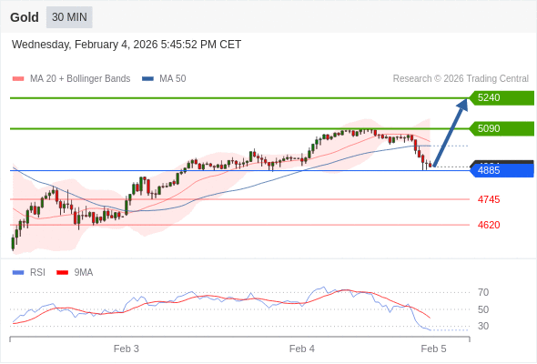交易策略: 在 4885 之上,看涨,目标价位为 5090 ,然后为 5240 。