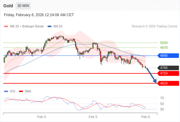 在 4890 之下,看跌,目标价位为 4710 ,然后为 4620 。
