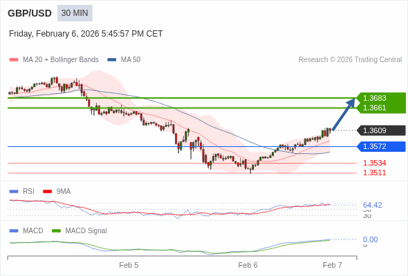 英镑/美元 当日内 : 看涨,当 1.3572 为支撑位。