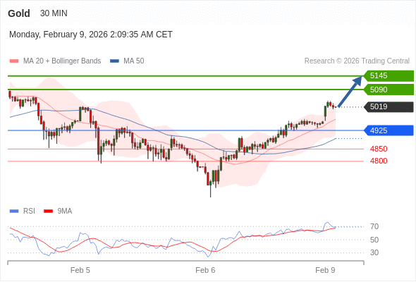 在 4925 之上,看涨,目标价位为 5090 ,然后为 5145 。