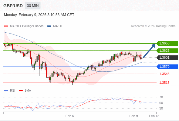 在 1.3570 之上,看涨,目标价位为 1.3625 ,然后为 1.3650 。