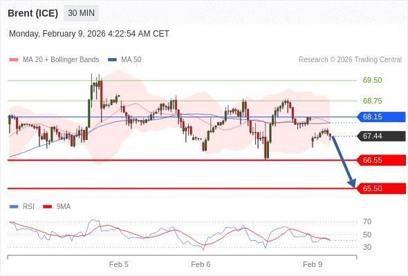 交易策略: 在 68.15 之下,看跌,目标价位为 66.55 ,然后为 65.50 。