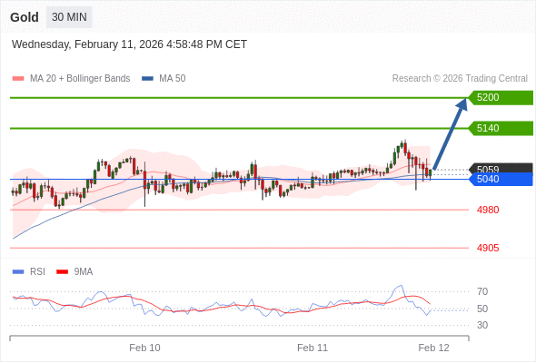 交易策略: 在 5040 之上,看涨,目标价位为 5140 ,然后为 5200 。