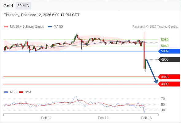 在 5007 之下,看跌,目标价位为 4845 ,然后为 4800 。