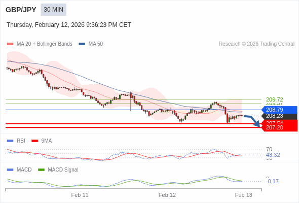 英镑/日元 当日内 : 看跌,在 208.79 之下。