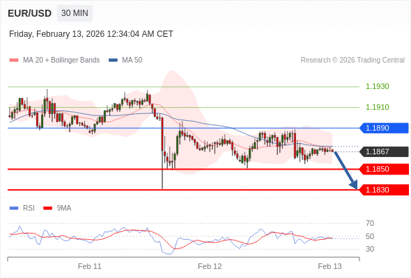 欧元/美元 当日内: 短期关键阻力位在1.1890。
