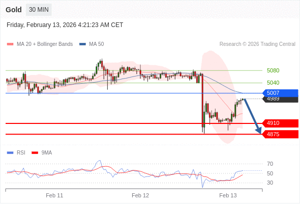 在 5007 之下,看跌,目标价位为 4910 ,然后为 4875 。