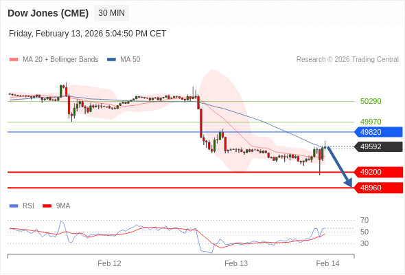 在 49820 之下,看跌,目标价位为 49200 ,然后为 48960 。
