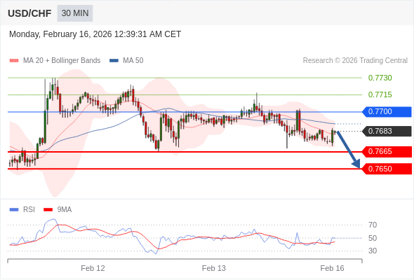 在 0.7700 之下,看跌,目标价位为 0.7665 ,然后为 0.7650 。