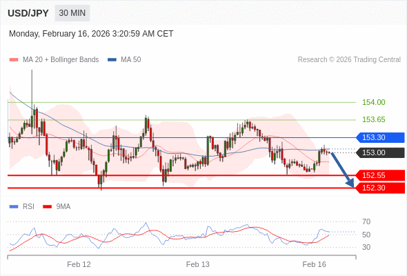 交易策略: 在 153.30 之下,看跌,目标价位为 152.55 ,然后为 152.30 。