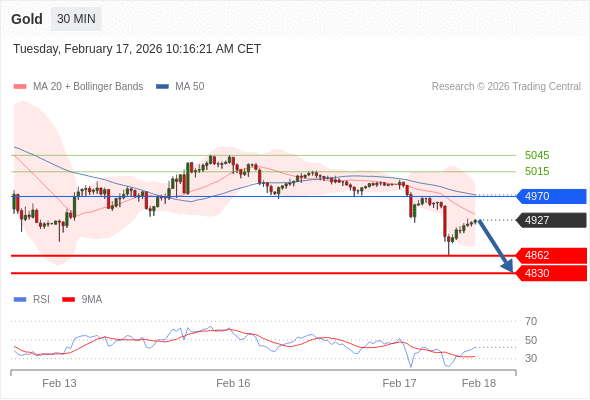在 4970 之下,看跌,目标价位为 4862 ,然后为 4830 。