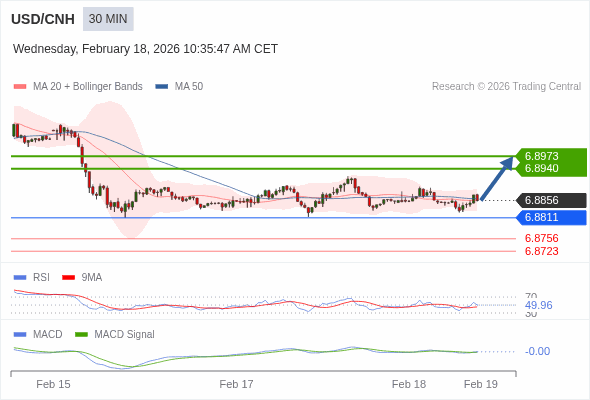 替代方案: 在6.8811以下,期待6.8756和6.8723。
